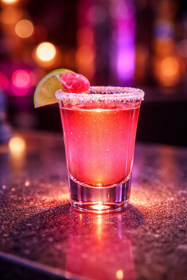 A swirl of vanilla and cherry soda crowned with a puff of whipped cream. The fizz tickles sweetly, a playful tease with every sip.