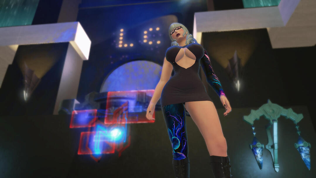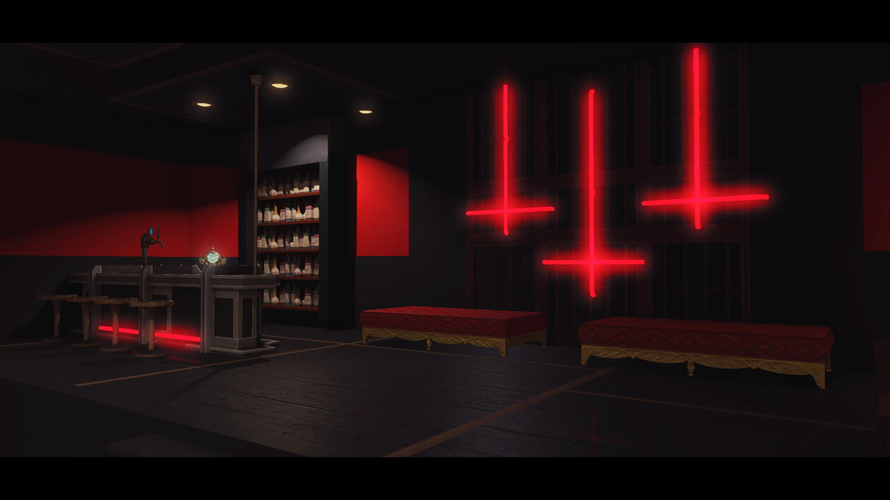 Scandal in Silk. Plum wine, vodka, lychee syrup, and a float of edible glitter. Served in a coupe with a kiss print on the rim. 15,000 gil